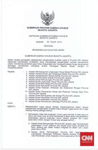 Kepala Dinas Pendidikan serta Kepala Dinas Pemuda dan Olahraga pun diminta untuk mengadakan tanaman serupa di seluruh gedung sekolah. Pula, di fasilitas olahraga serta kesehatan milik Pemprov DKI Jakarta.Diketahui, sejak pekan lalu, situs pengukur kualitas udara, yakni Airvisual dalam menempatkan Jakarta sebagai kota dengan udara yang paling buruk di tingkat dunia. Karenanya, isu polusi ini pun sudah sampai ke meja pengadilan.